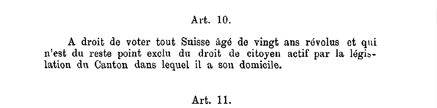 Nationalrat Peter von Roten vertritt Anfang der 1950er-Jahre die Ansicht, dass der Ausdruck «Schweizer» neutral und als generisches Maskulinum zu verstehen ist, welches Frauen und Männer einschliesst. Wenn die Bundesversammlung dieser grammatikalischen Auslegung folgt, so von Roten, kann sie Artikel 10 des Bundesgesetzes vom 17. Juni 1874 betreffend Volksabstimmungen über Bundesgesetze und Bundesbeschlüsse ändern und den Frauen auf Bundesebene das Stimm- und Wahlrecht zugestehen.