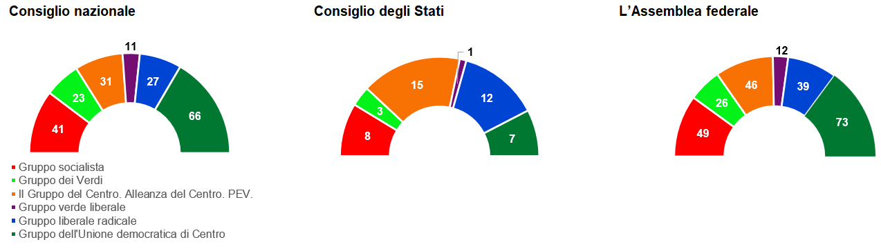 I deputati all'Assemblea federale si riuniscono in gruppi e non in partiti. I gruppi comprendono membri di un medesimo partito o di partiti con un orientamento simile.