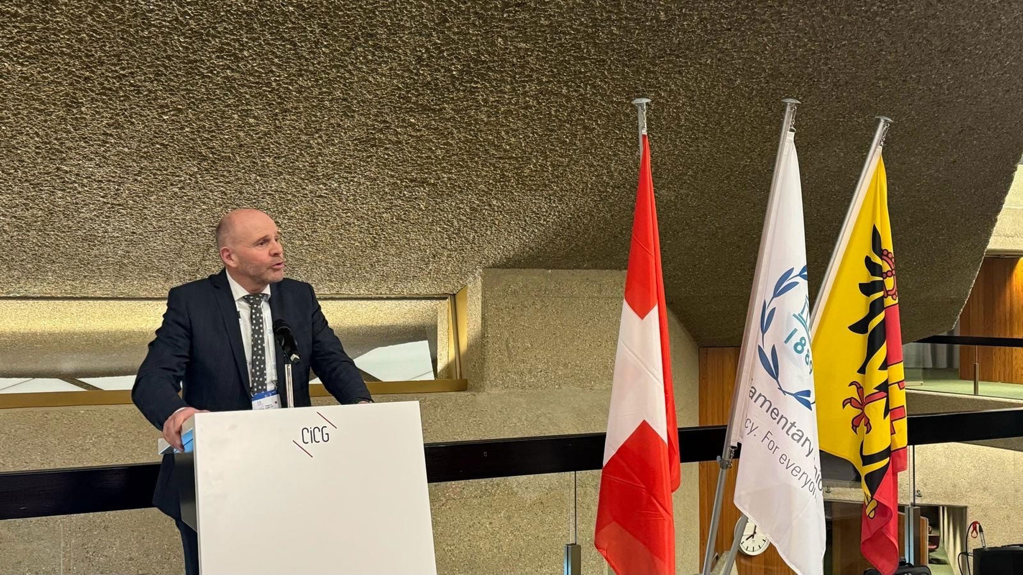 Delegation chair Thomas Hurter welcomes participants to the 148th IPU Assembly (Swiss reception)
