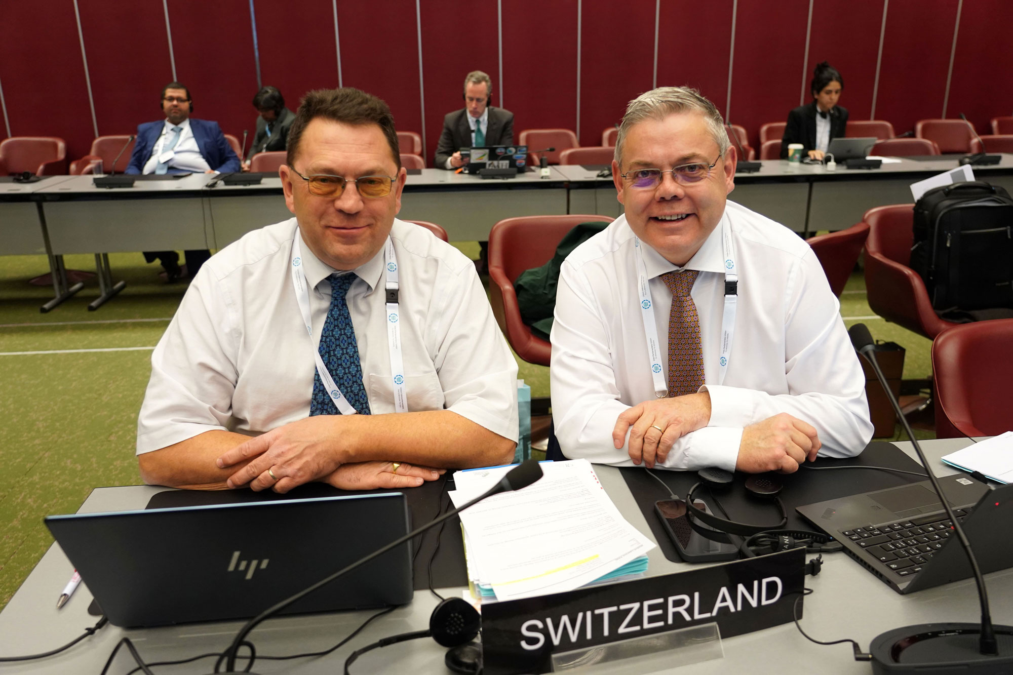 Laurent Wehrli and Franz Grüter at the meeting of the Committee on Peace and International Security